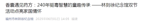 2025年6月1日“福州市林则徐纪念馆”微信公众号对活动进行报道