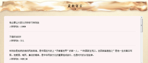 许多网友在留言板中表达了对林则徐事迹和精神的敬仰和推崇,表达了对活动的支持。但也有许多网友对题目的答案提出了疑问,比如网友“sunnystar”留言:“林则徐岳父我选张师诚为什么批错,网上都这么讲的。不是张师诚,你说是谁?”林则徐的夫人郑淑卿,是福州名儒郑大谟的女儿(呀!小编好像透题了!)。网络上流传的某些信息常常是不经推敲的信手之作,网友们在浏览时更需要用审视的眼光来对待。这也是本次活动我们选题、定题的一个重要考量:弘扬林则徐的民族精神、爱国情怀,引导正确认识历史,促进网友对传统文化的关注。