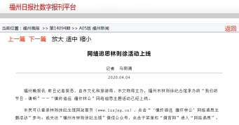 此外,福州日报、福州晚报、福州新闻网等媒体纷纷关注转载本次网络追思主题活动,现将相关报道截图如下: