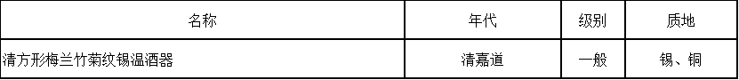 清方形梅兰竹菊纹锡温酒器