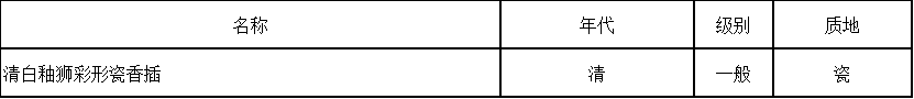 清白釉狮彩形瓷香插
